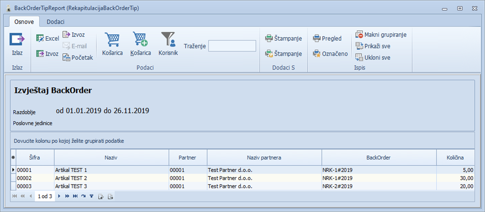 rezultat izvješća za tip Backorder-a (KUP):