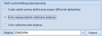 Ukoliko djelatnk nema određenu radnu smjenu u samom unosu evidencije svim nepopunjenim radnicima moguće je odabrati smjenu u kojoj trenutno rade.