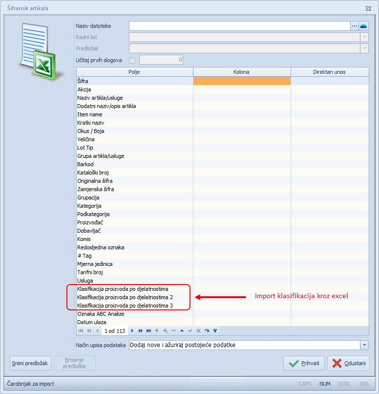 u slučaju da se ne vide sve klasifikacije kod importa potrebno je ažurirati definiciju polja importa da su vidljiva sva polja za povezivanje.