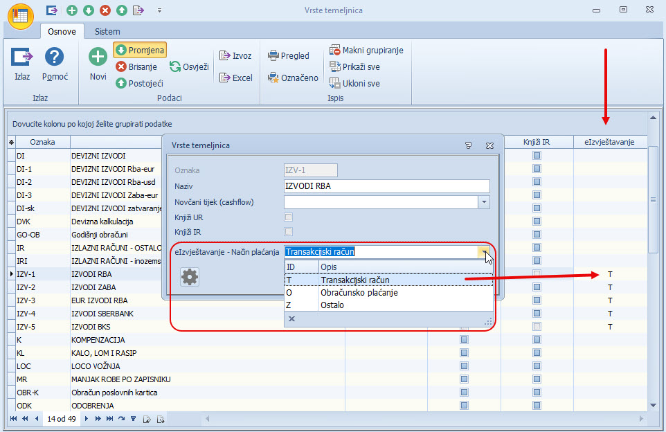zatim se treba popvezati temeljnice s vrstama načina plaćanja za eIzvještavanje unutar šifrarnika temeljnica: