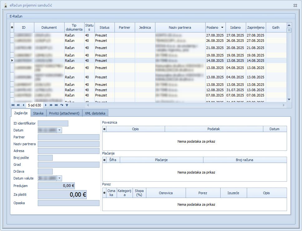Prijem podataka za primke se podešava preko Podešavanje > Knjiženje i pod tab-om E račun se stavi kvačica na prijem podataka.