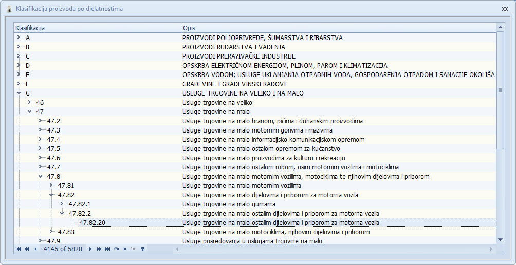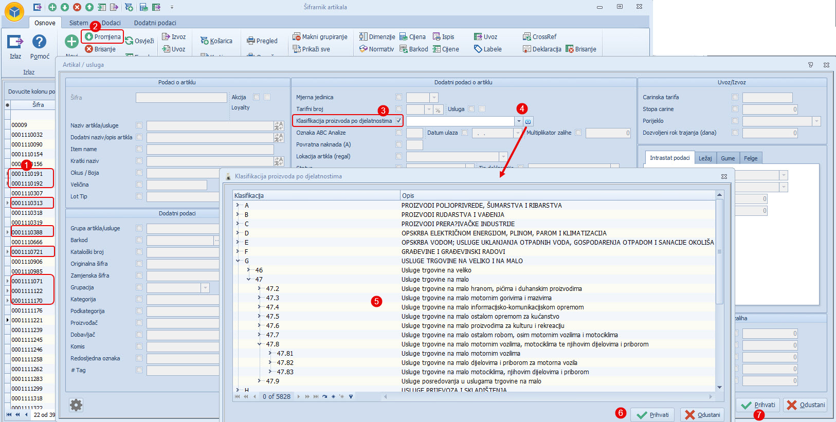 Matični podatci > Dodatni šifrarnici > Dodaci uz artikle > Klasifikacija proizvoda po djelatnostima