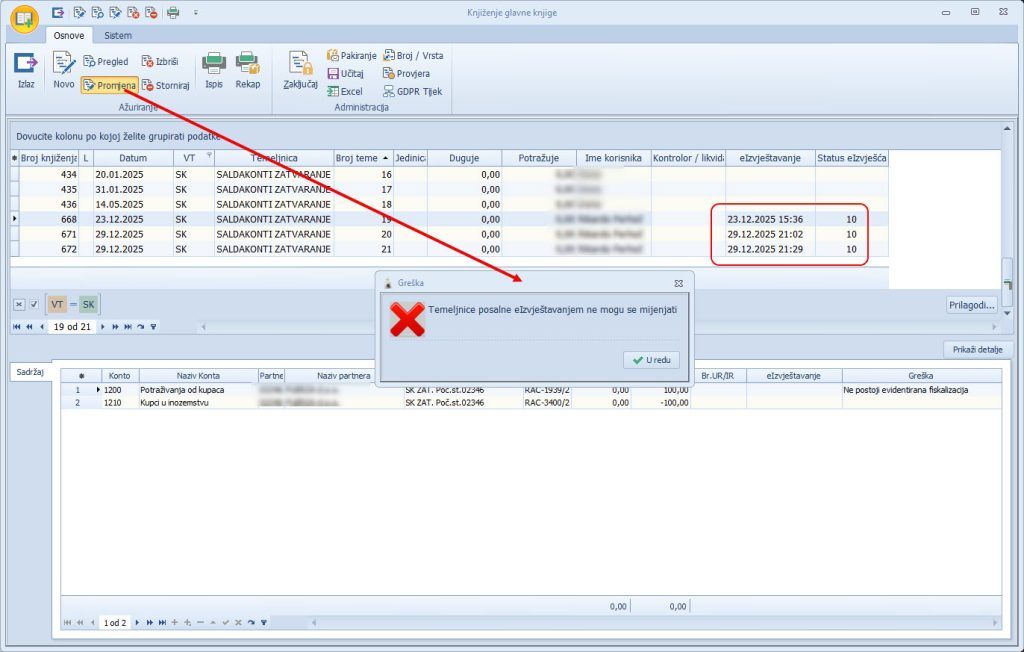 Račun je poslan, ali fiskalizacija nije uspješna.