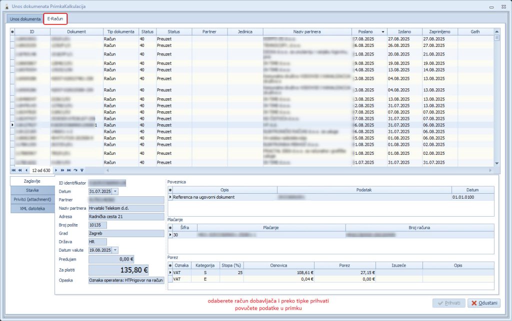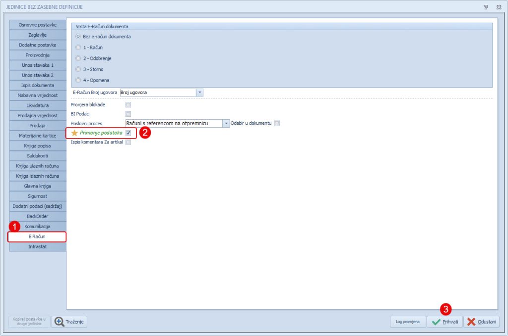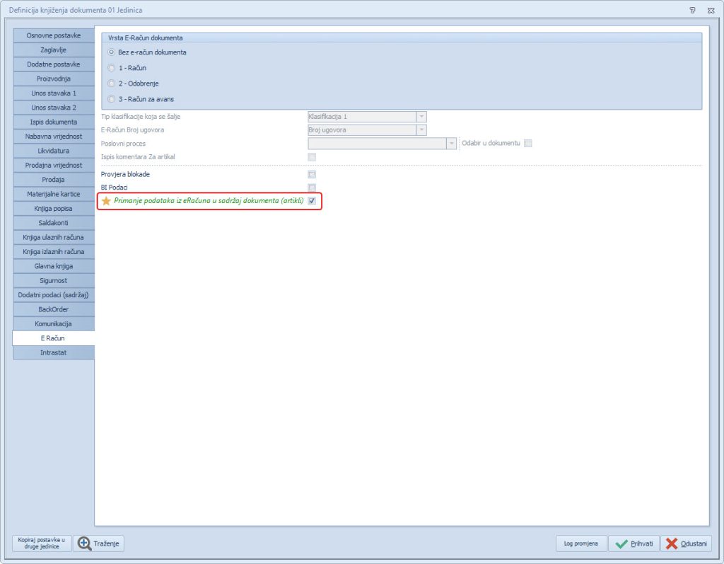 eRačuni podešavanja za prijem podataka na primkama kalkulacijama #