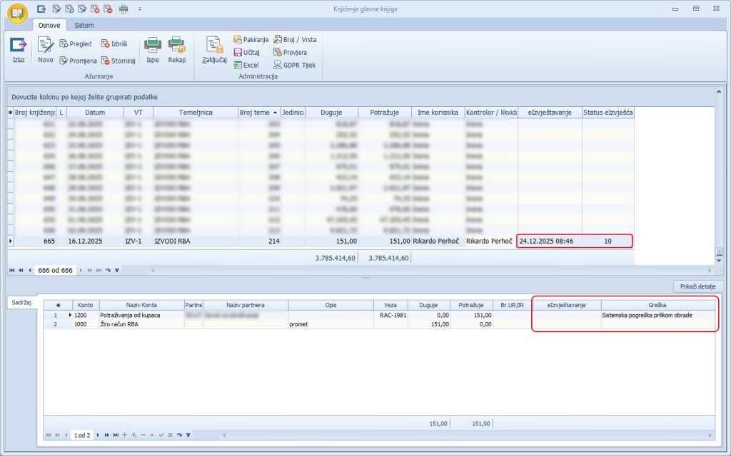 Temeljnice koje se šalju na PU imat će datum kad se poslane, kao i status da li je sve prošlo u redu, da li postoje greške ili nisu poslane.