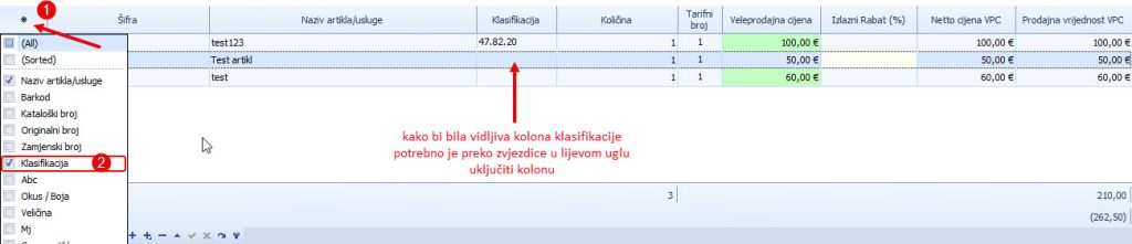 od verzije 1.8.25.9329A moguće je podesiti 3 klasifikacije po pojedinom artiklu.