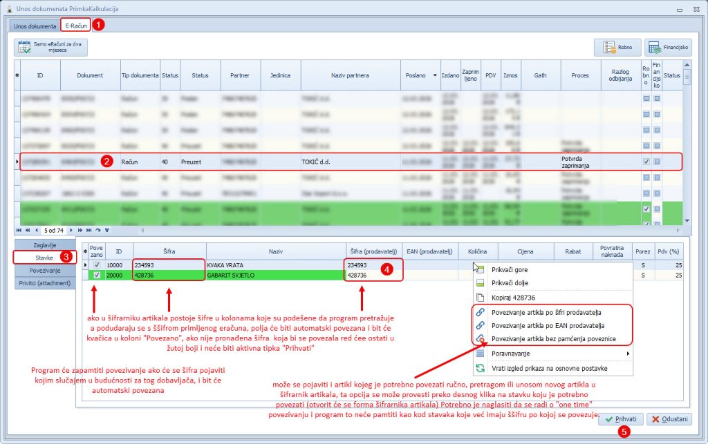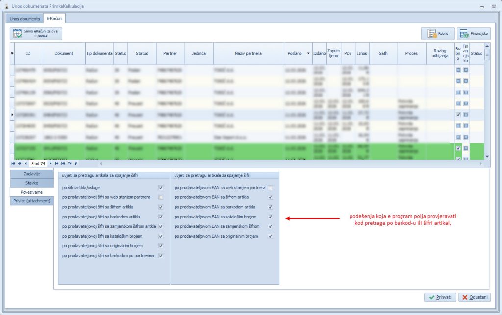 eRačuni podešavanja za prijem podataka na primkama kalkulacijama #