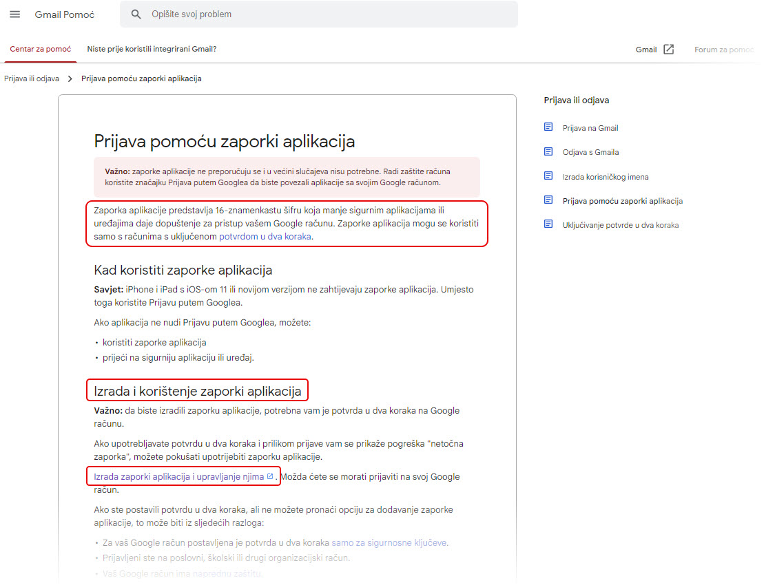 Gmail – izrada zaporke aplikacije #