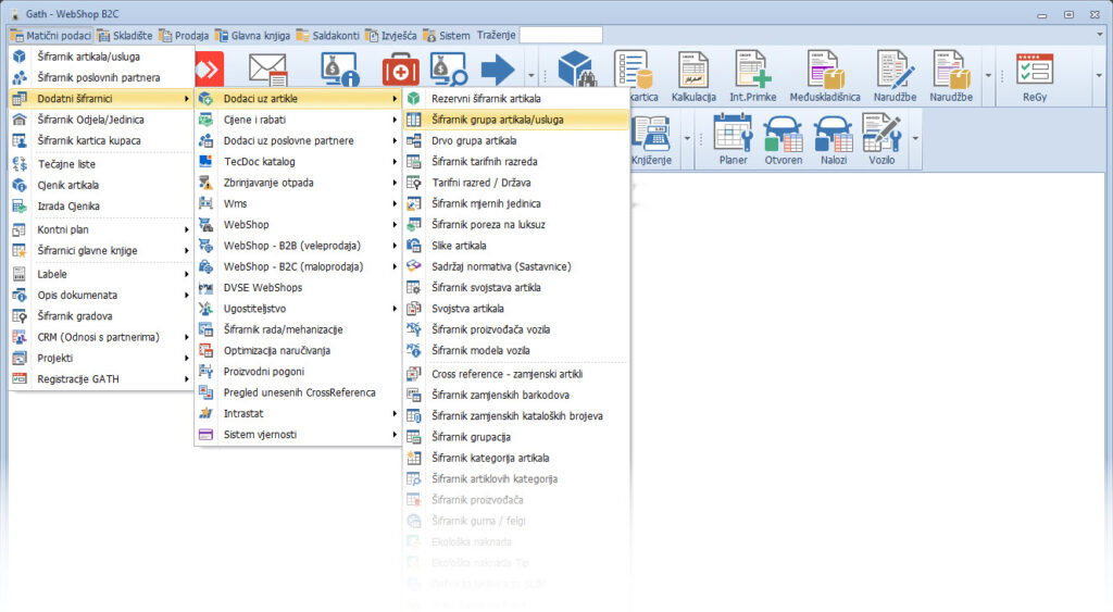 Matični podaci > Dodatni šifrarnici > Dodaci uz artikle > Šifrarnik grupa artikala/usluga