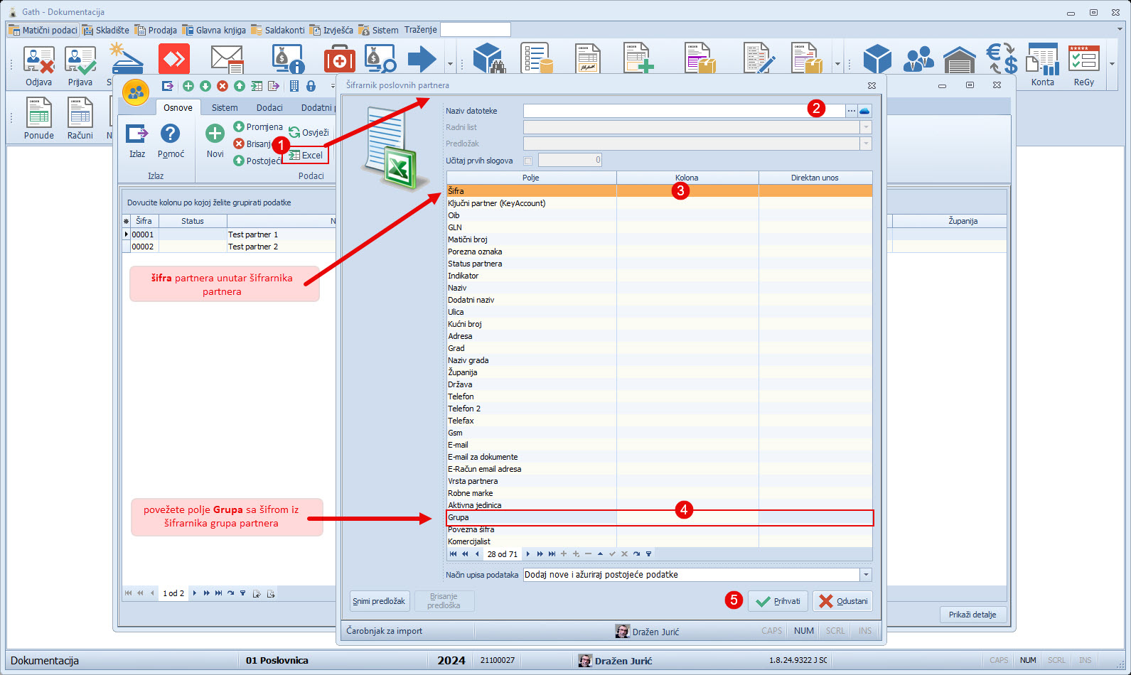 Šifru grupe partnera je moguće povezati s partnerima unutar šifrarnika i preko importa excel-om.
