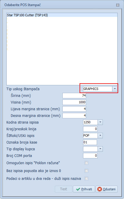 POS pisač mora imati grafički mod ako se već koristi kao pisač na blagajni velika je mogućnot da je grafički mod omogućen jer se ne bi ispisivao QR kod porezne uprave koji je zakonskli obavezan. Provjera je svejedno dobrodošla, a možete vidjeti postavku. Datoteku je potrebno kopirati u glavnu mapu gdje je smješten Gath.