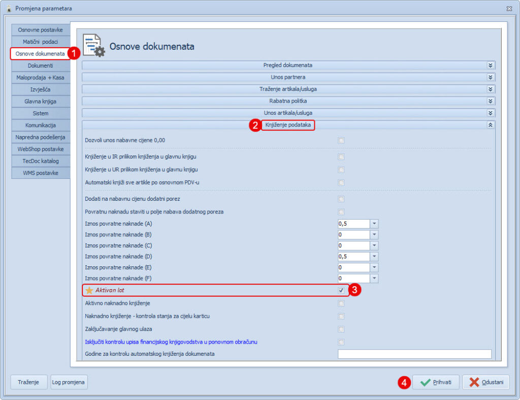 • Definicija knjiženja dokumenata s Lot/šarž-om