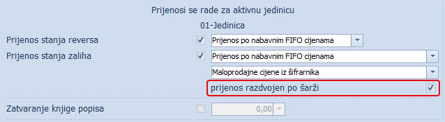 Potrebno je i obratiti pažnju na prijenos godine, treba staviti kvačicu da se prijenos razdvoji po lot-u.