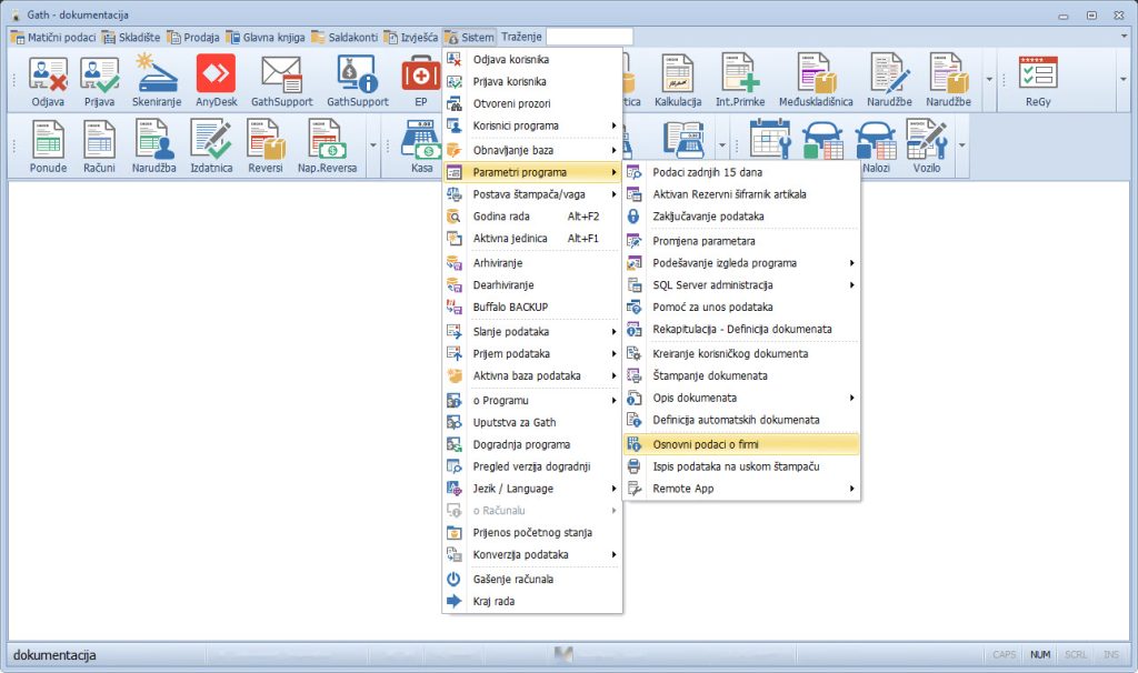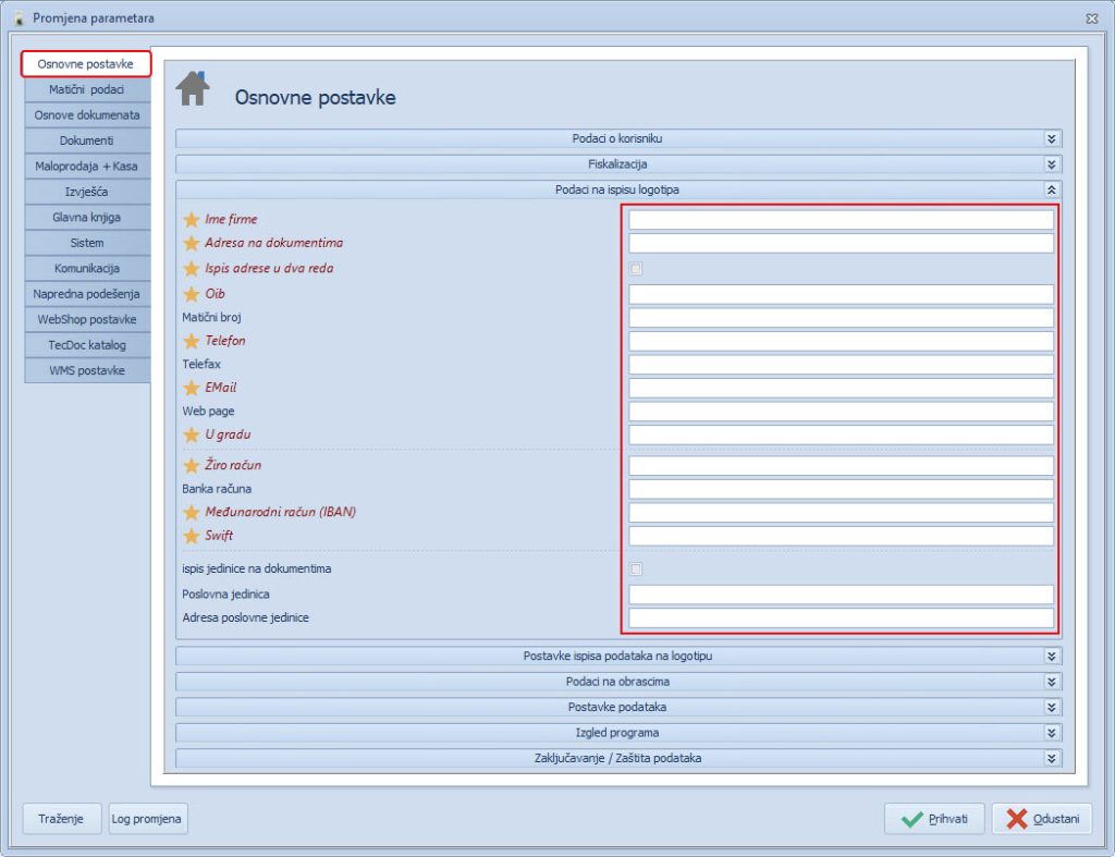 Sistem > Parametri programa > Osnovni podaci o firmi