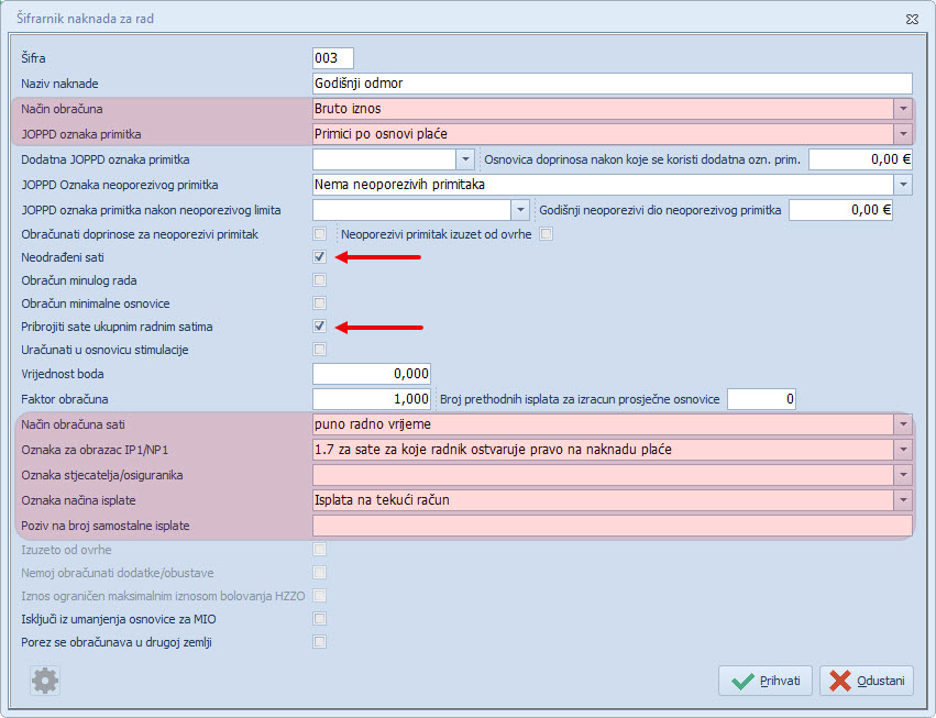 - Na naknadu redovan rad staviti kvačicu na obračun minulog rada
