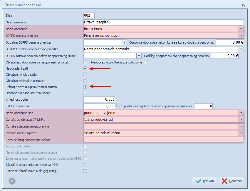 kako bi se napravio obračun plaće potrebno je definirati naknade za rad. Ako je naknada ispravno podešena, automatika povlačenja podataka u JOPPD obrazaca će biti ispravna.