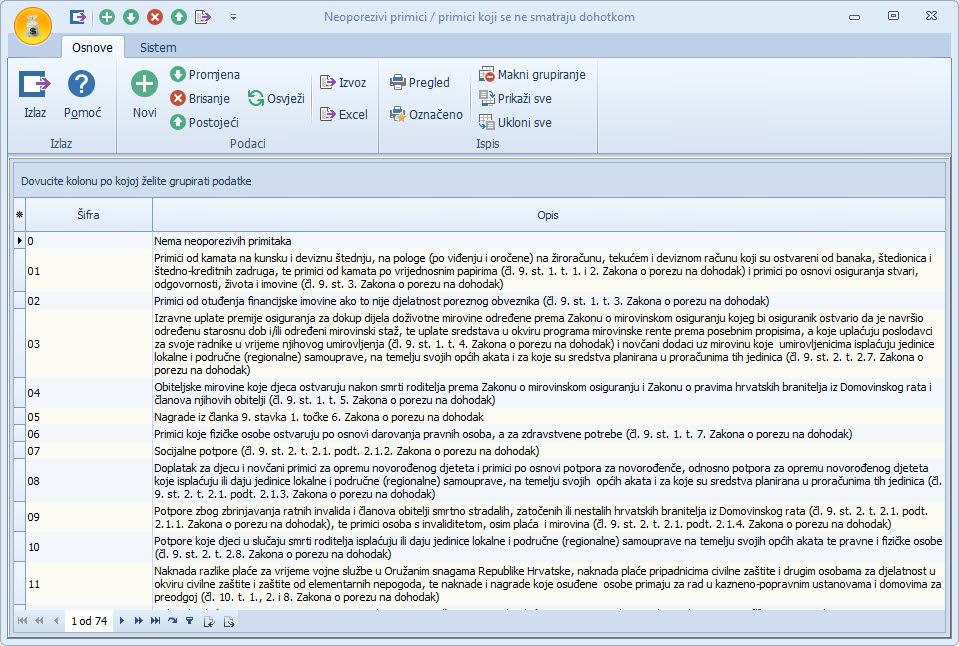Šifrarnik JOPPD obrasca za Neoporezivi primitci/primitci koji se ne smatraju dohodkom