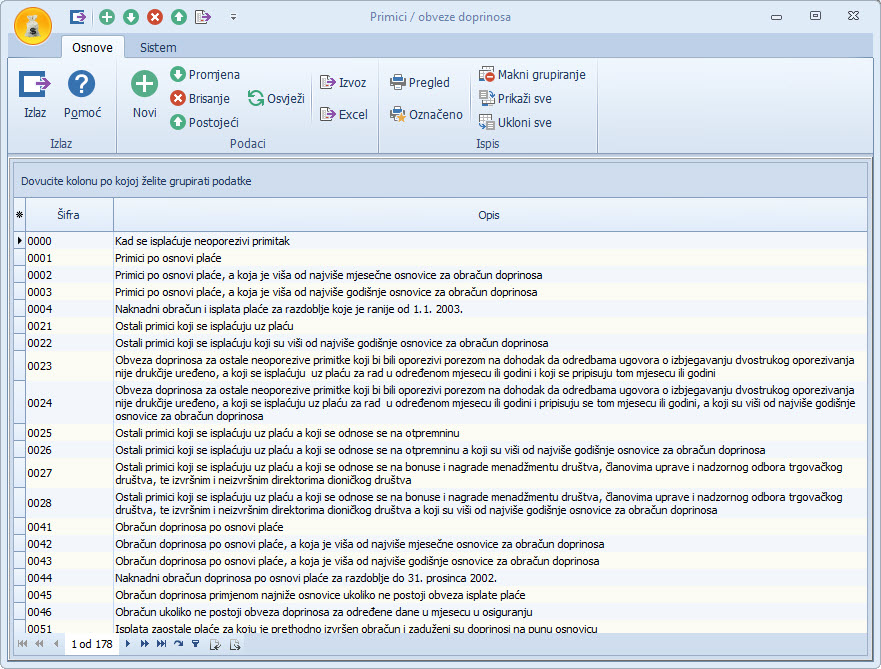 Ukoliko imate druge doprinose, potrebno ih je definirati unutar šifrarnika doprinosa.