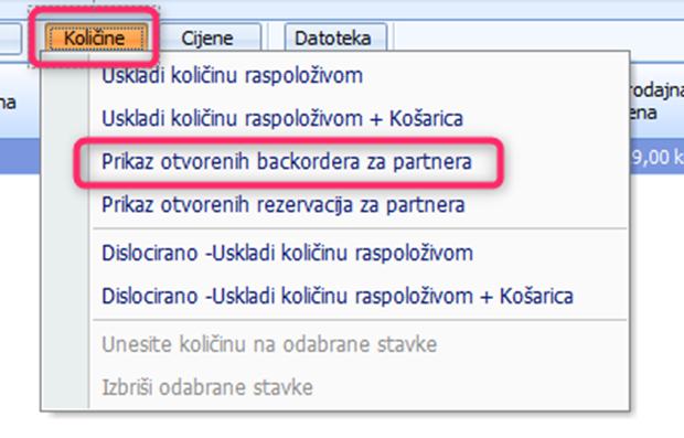 Pri samoj izradi dokumenta moguće je prikazati izvješće otvorenih rezervacija za partnera.