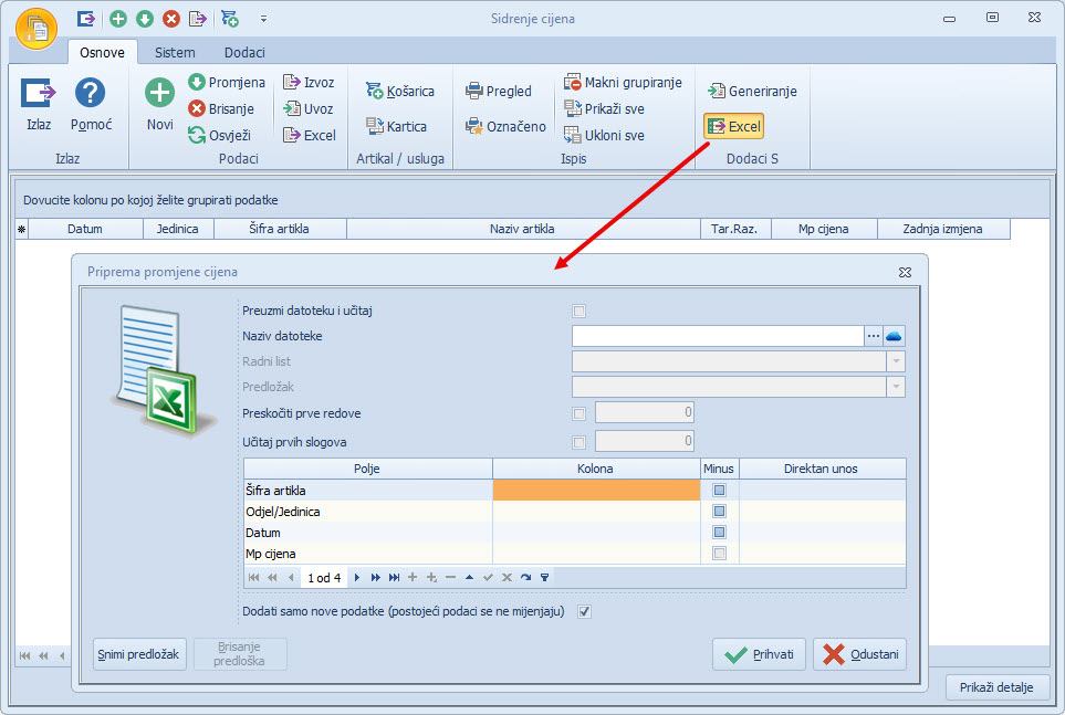 - Generiranje sidrenih cijena iu šifrarnika artikala: