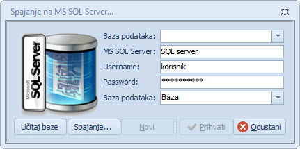 Potrebno je unijeti podatke za povezivanje s bazom s kojom će se sinkronizirati podaci.
